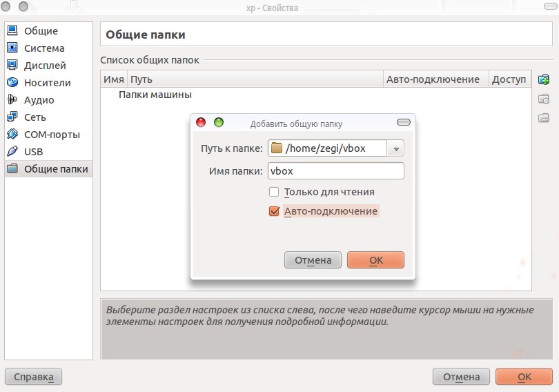 После установки на него виндовса переходим в свойства виртуальной машины и добавляем общую папку.