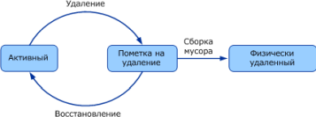 Затем он переименовывается и перемещается в контейнер Deleted Objects, в котором хранится в течение срока жизни удаленного объекта. По истечении этого срока он удаляется окончательно.