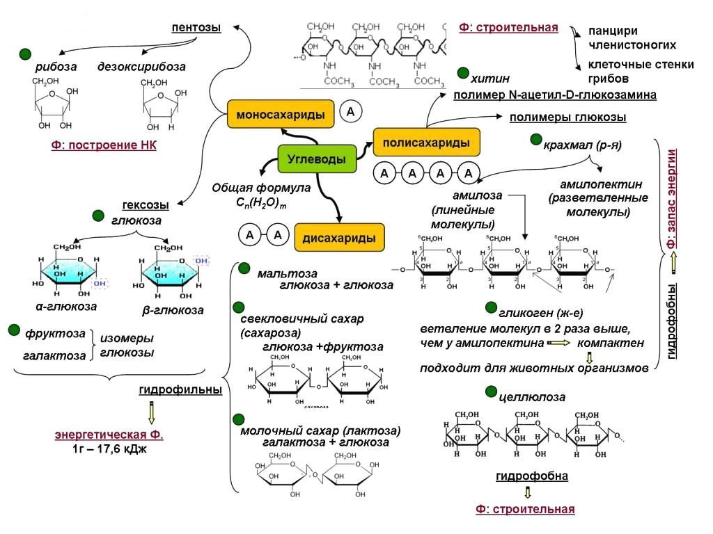 ЭнергетическиеКрахмал и гликогенГлавное назначение данных компонентов состоит в накоплении углеводов, они насыщают организм глюкозой (источником энергии)