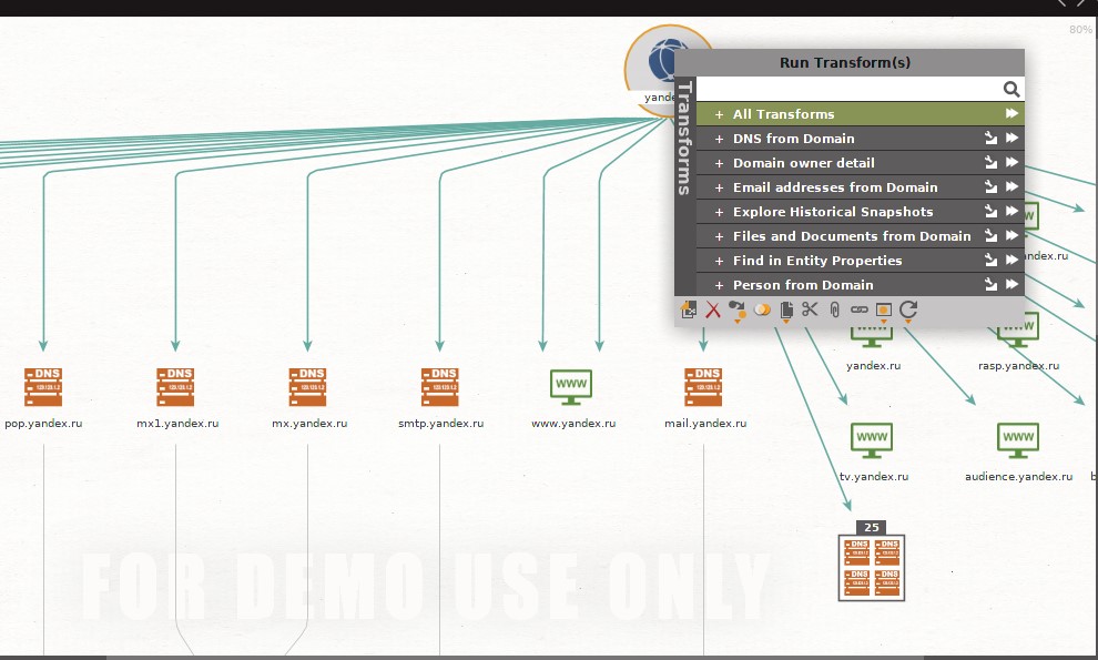 Maltego уникален тем, что использует мощную, гибкую структуру, которая формируется благодаря настройкам, поэтому, Maltego может быть адаптирован к вашим собственным, уникальным требованиям.