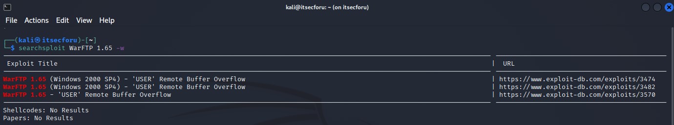 Многие эксплойты содержат ссылки на бинарные файлы, которые не включены в стандартный репозиторий, но могут быть найдены в репозитории Exploit Database Binary Exploits. Если вы предполагаете, что во время оценки у вас не будет доступа в Интернет, проверьте оба репозитория, чтобы получить наиболее полный набор данных.
