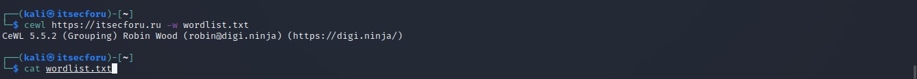 Эта команда сохранит сгенерированный нами список слов. Флаг -w используется для записи результата в файл