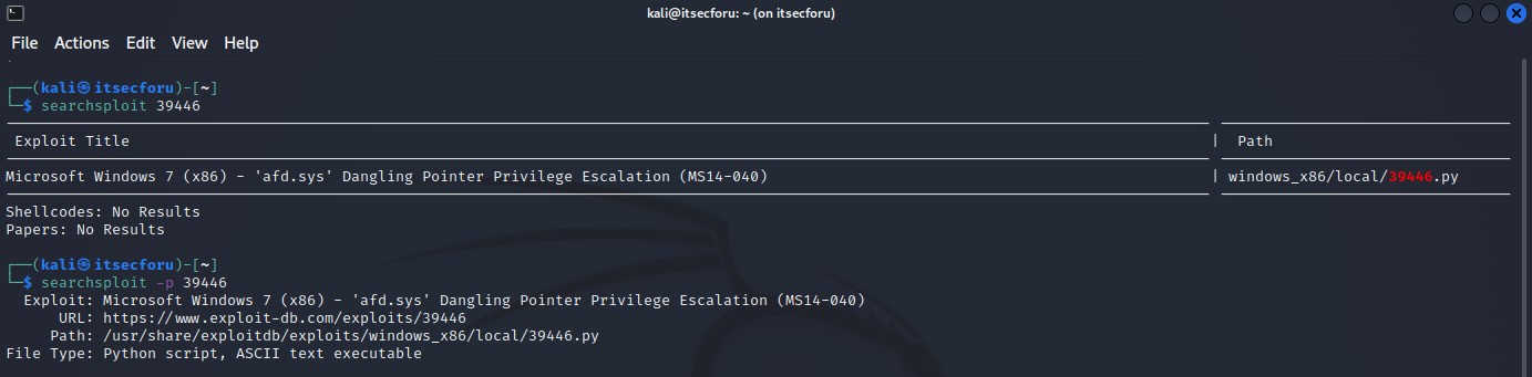 Используя -p, мы можем получить дополнительную информацию об эксплойте, а также скопировать полный путь к нему в буфер обмена: