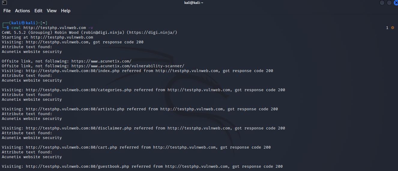 Cewl – это предустановленный инструмент в kali Linux, который предназначен для создания списка слов, используя любые URL, например (сайты организаций, персональные страницы и т.д.). В дальнейшем сформированный список слов можно использовать для взлома паролей с помощью john the ripper или для проведения атак методом brute-force. В этом инструменте существует множество опций, поэтому мы расскажем вам о некоторых командах, которые мы чаще всего используем. Указанный инструмент может быть полезен при проведении тестирования на проникновение, так как всегда лучше использовать словари слов, подготовленные под таргетированную цель.