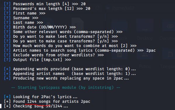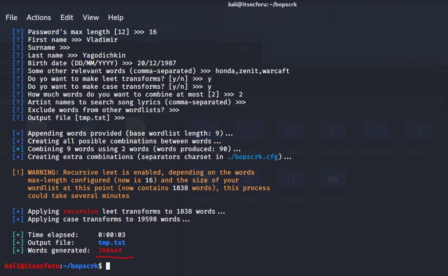 Для примера снова вновь созданного wordlist.txt , в котором после слова идёт от 2 до 4 цифр и в котором буквы замены на специальные символы.
