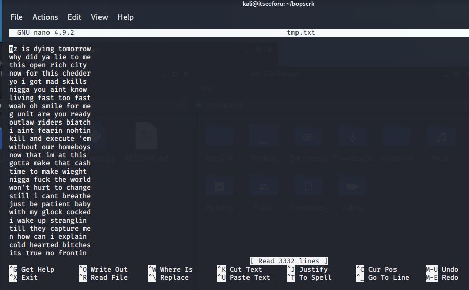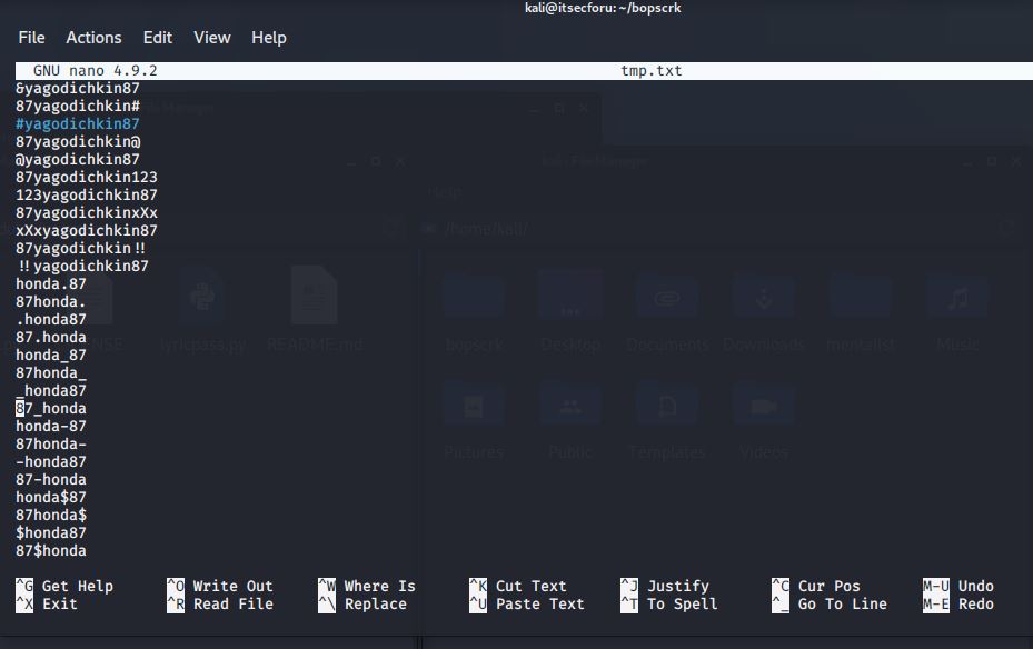 Далее объединяем оба списка в один и сохраняем wordlist.txt. Стоит отметить, что наш словарь составил лишь 84 слова и создан для примера. Понятно, что для эффетивного словаря необходимо куда большее колличество слов, например если словарь создается под определенную организацию необходимо указать все города присутсвия, выпускаемую продукцию, наименование используемых сервисов, структурных подразделений, список имен в соответствии с территориальным расположением (например в республике Башкортостан, помимо русских имен популярны такие как: Эмир, Амир, Шариф, Тагир, Самир, Рамазан), также крылатые фразы, профессиональный слэнг, текущие тренды, (например COVID19) и т.д.