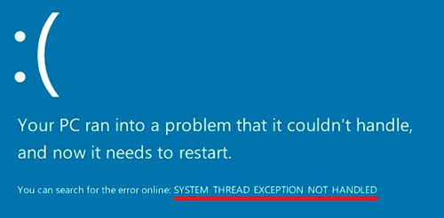 Исправление ошибки system thread exception not handled Windows 10