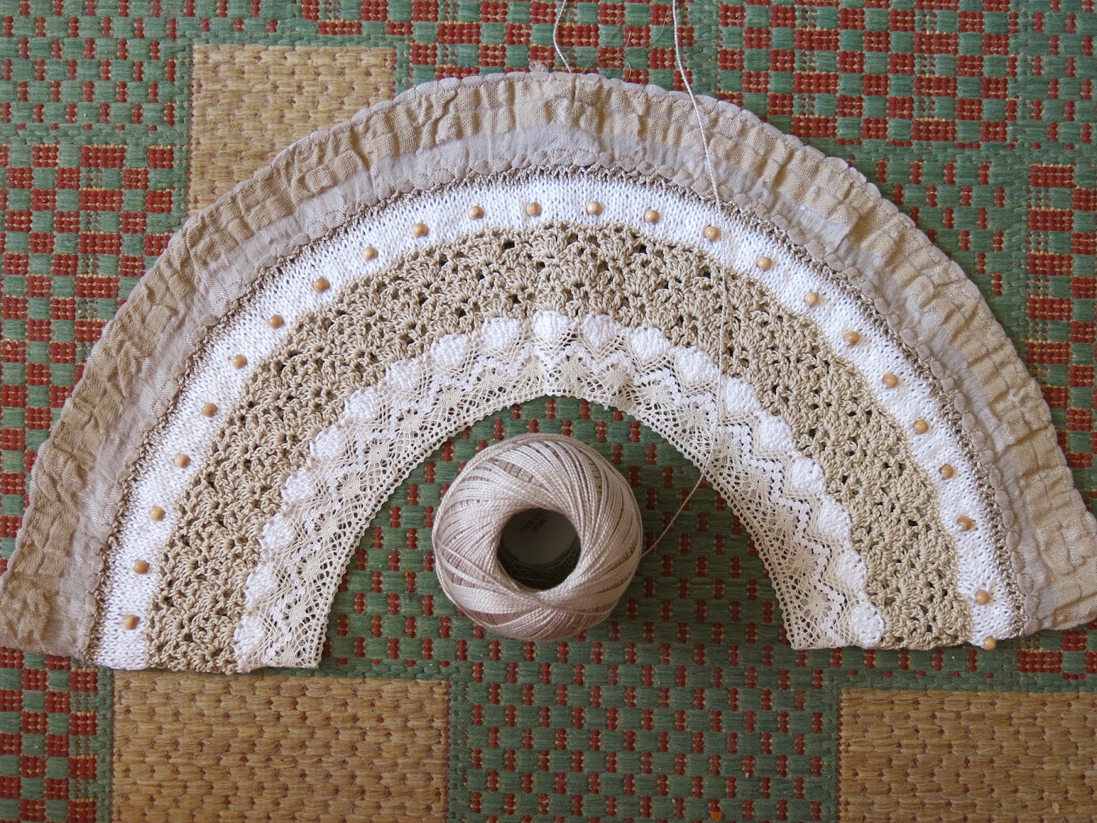 Еще хожу на курс занятий к Лене Родиной в Трискеле — учусь ввязывать кружево крючком, спицами, и ткань тоже ввязываем, занятия очень интересные! И вот мои успехи на сегодня: