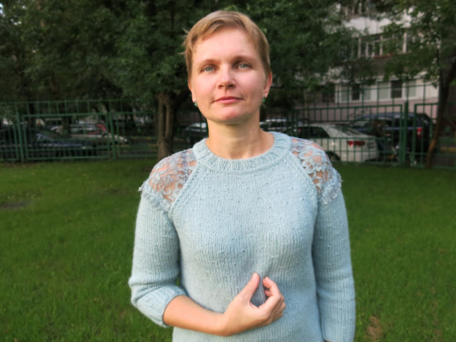 - летом закончился проект Lavande de Provence — это платье с ввязанным кружевом в технике Лены Родиной мы вязали в тест-группе в Трискеле и оно получилось очень красивым!