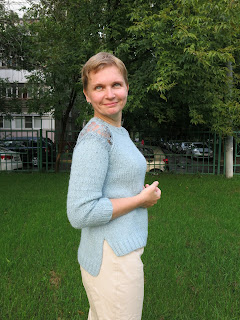- я наконец-то доделала «Синий лён» и даже гуляла в нем летом, как-то все вовремя произошло, летом связала летнее и с удовольствием носила. Мне очень нравится эта модель, и самое в ней интересное, что по ощущениям рук — это самый обычный «мешок»! потому что лён есть лён (муж мне говорит «забери с балкона свой мешок, он уже высох»))) )! НО вместе с тем — и что самое удивительное — тело любит лён! В нем очень комфортно и приятно в самую жару.