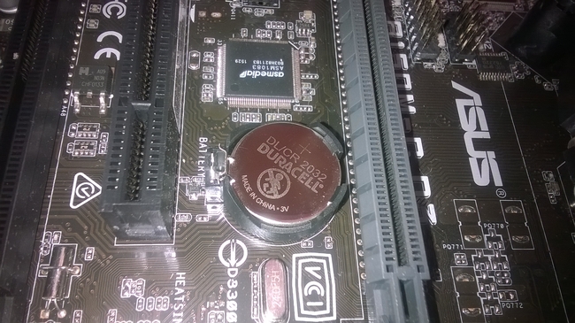 Устанавливаем батарейку BIOS. В исправном состоянии её рабочее напряжение не ниже 3В.