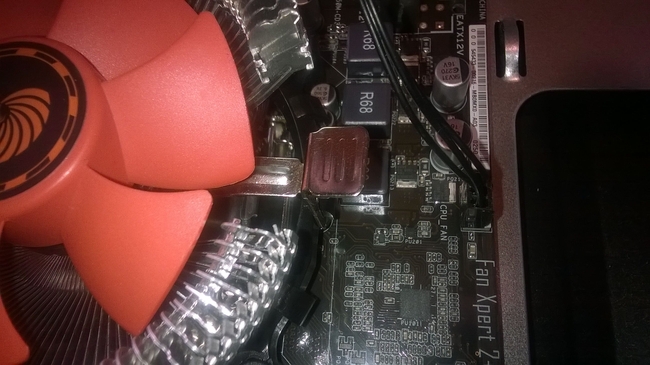 К рамке крепится радиатор с вентилятором. Провод вентилятора подключается в мат.плату к штыревому разъему с надписью CPU_FAN. Подробнее места подключения указаны в инструкции на мат.плату.