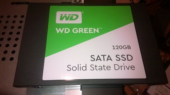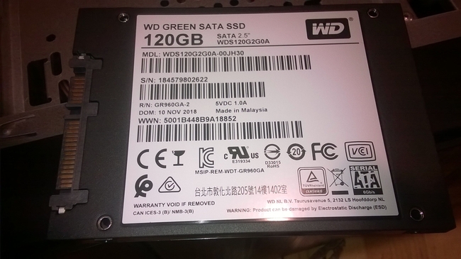 Для компьютера был выбран самый дешевый SSD WD Green на 120Гб (WDS120G2G0A). Это твердотельный накопитель без вращающихся частей – большая флэшка. В ней диска уже нет, название условное. Такие SSD лучше всего использовать для установки на них операционной системы в связи с очень высоким быстродействием. Данные дешевле будет хранить на обычных жестких дисках HDD. Срок жизни SSD ограничен количеством циклов перезаписи.