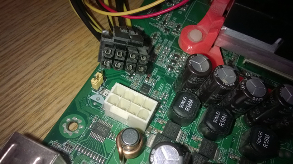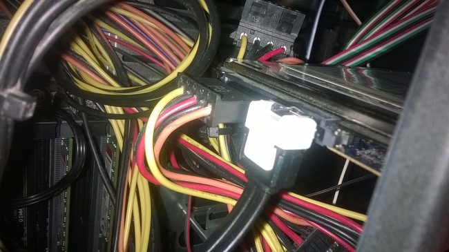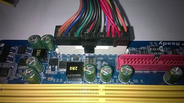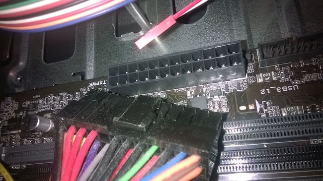 Подключаем разъемы к мат.плате и SSD. Сперва самый большой 24-pin MOLEX. Промахнуться сложно, он один такой.