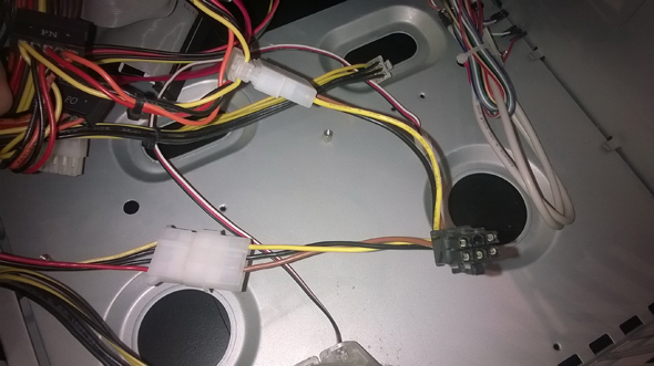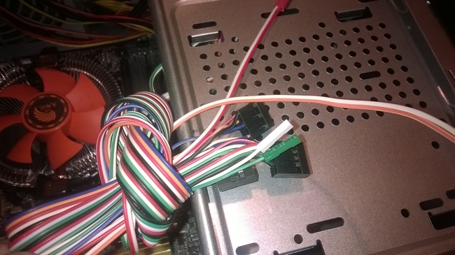 Теперь нужно подключить небольшую скрутку проводов, идущих из корпуса.