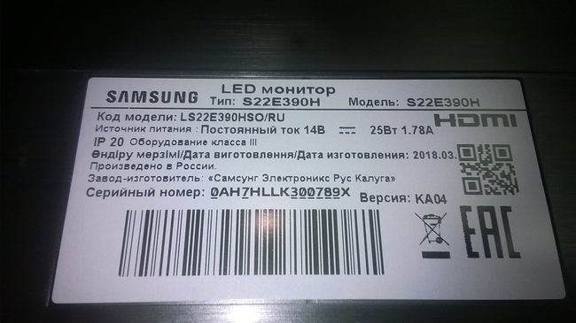 Монитор каждый выбирает по своему вкусу и размеру. В данном случае выбран монитор SAMSUNG S22E390H. Как понятно из названия диагональ его экрана 22 дюйма, соотношение сторон 16:9, разрешение 1920х1080 Full HD. Поверхность экрана матовая. Официальная страница монитора.