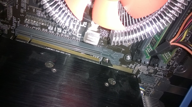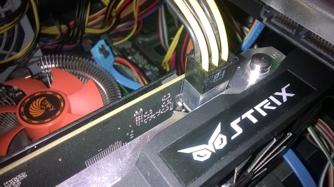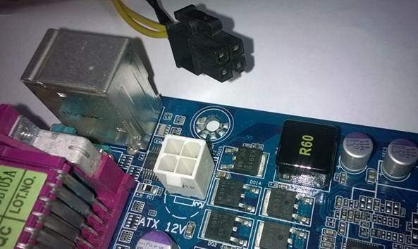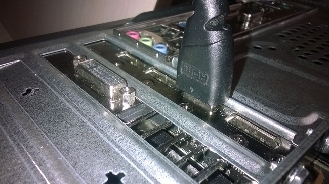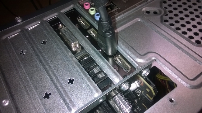 Вытаскиваем штекер HDMI из встроенной в мат.плату видеокарты и подключаем в дискретную. Штекер HDMI не влезал до конца в свой разъем в видеокарте, пришлось немного отогнуть плоскогубцами верхнюю часть выемки.