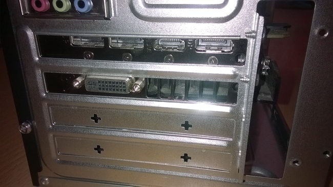 В задней части корпуса нужно выломать две заглушки, для правильного расположения видеокарты.