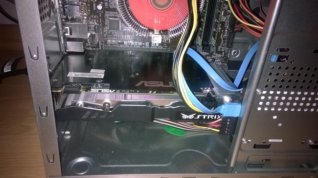 Это самая дорогая часть ПК и если бюджет не позволяет купить её сразу, то это можно сделать через некоторое время, поднакопив средств. Видеокарта GTX960 от производителя ASUS специально не покупалась и была переставлена из старого компьютера. Из актуального, примерно того же уровня в настоящее время это видеокарта GTX1050Ti 4GB.