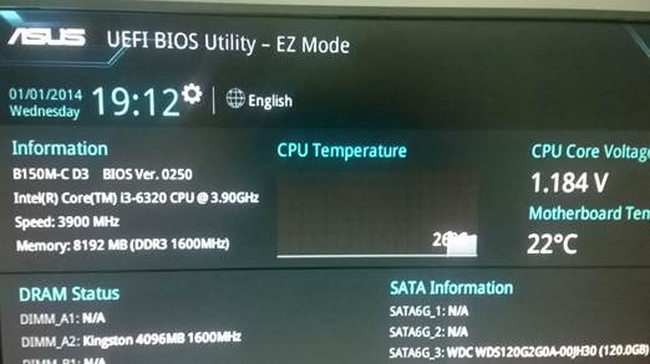 Нажимаем кнопку питания. Компьютер включится. Нажимая кнопку DELETE на клавиатуре попадаем в меню BIOS. В режиме EZ наиболее важные параметры собраны на одной странице.