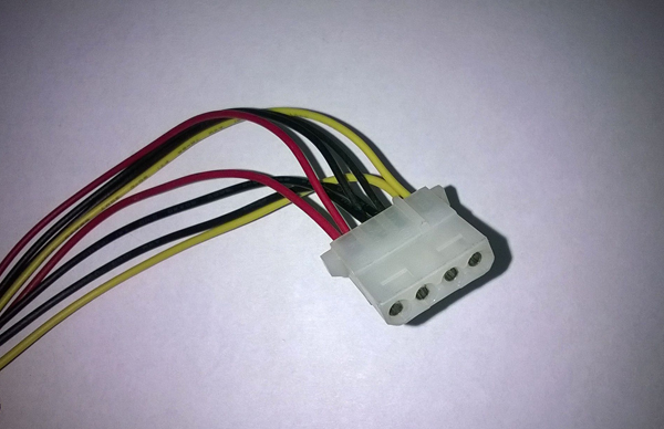 Питание подается через 6-ти контактный разъем с черными и желтыми проводами (12В).