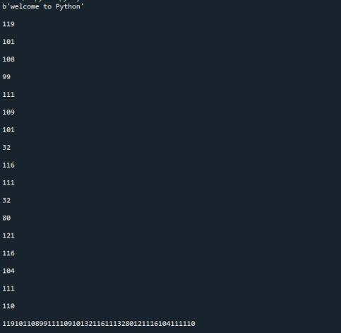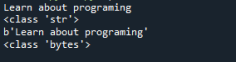 Мы рассматриваем my_str=«Learn about programming» как источник, который нужно преобразовать в байты в приведенном выше коде. На следующем шаге мы превратили строку в байты с помощью метода encode(). До и после преобразования функция type() используется для проверки типа объекта. Здесь используется enc = utf-8.
