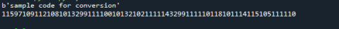 В качестве примера мы использовали строку my_str = “Sample code for conversion”. Мы использовали кодировку для преобразования после инициализации строки, а затем распечатали вывод строки. После этого мы распечатали отдельные байты следующим образом: