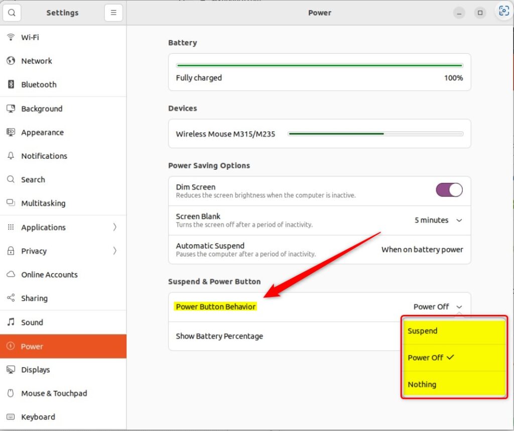 Как настроить поведение кнопки питания в Ubuntu Linux