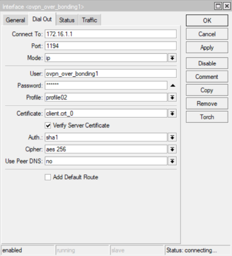 add local-address=172.16.2.1 name=ovpn_over_bonding1 password=ros7.elements.forever profile=profile02 remote-address=172.16.2.2 service=ovpn