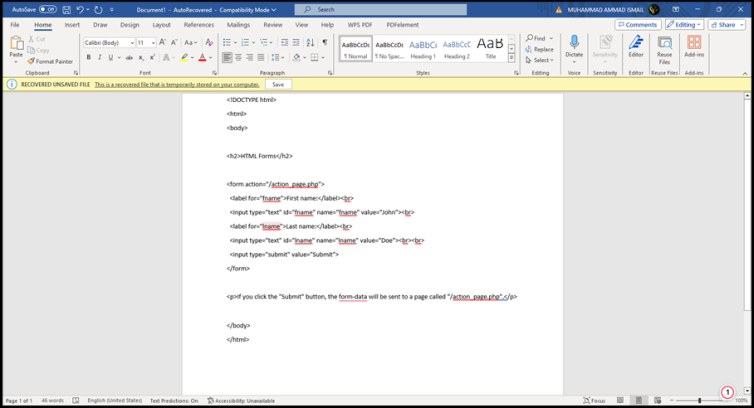 Шаг 6: После присвоения имени файлу добавьте в него содержимое. В качестве примера я показываю вам текст HTML-кода, который я пишу в текстовом файле.