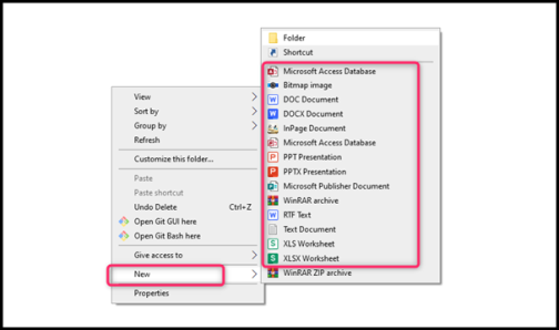 Шаг 4: Наведите указатель мыши на параметр «Новый» в контекстном меню. Откроется список, в котором вы сможете выбрать любой тип файла, который хотите создать. Если человек хочет сохранить текст, ему необходимо выбрать из списка опцию «Текстовый документ». Здесь я выбираю опцию «Текстовый документ».
