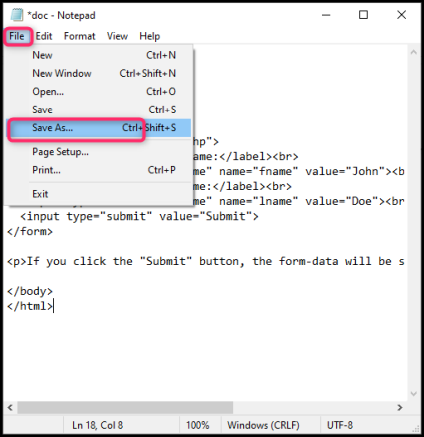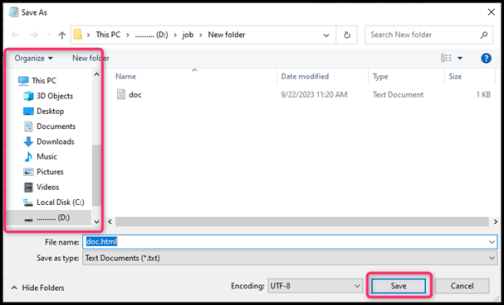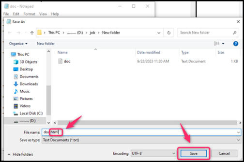 Шаг 8. Теперь добавьте тип расширения, если вы сохраняете HTML-код, затем добавьте .html после имени файла и нажмите кнопку «Сохранить», чтобы сохранить файл с новым расширением.