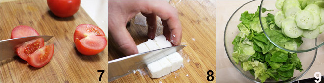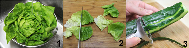 4. Нарезать мелко лук, зелень. Нарезать салат.