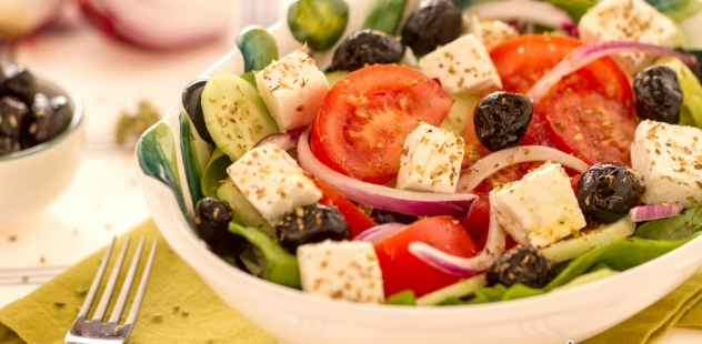 Греческий салат — это традиционное блюдо, которое можно найти в каждом греческом ресторане; его делают из зелёного салата, помидоров, огурцов, лука, оливок и феты, традиционного эллинского сыра. Греческий салат подают в качестве гарнира ко вторым блюдам, но его также можно вкушать как основное блюдо, если вы желаете устроить себе лёгкий и освежающий обед.