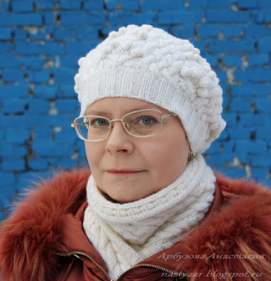 Из этой пряжи я вязала Изумрудную шаль , но там брала спицы потоньше и не сильно растягивала. Да, и свёкру связана шапка, точно такая же как у моего мужа: http://nastyaar.blogspot.ru/2015/01/blog-post_28.html поэтому и не стала снимать на фото.