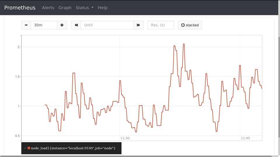 Expression: avg_over_time(node_load1{instance='localhost:9100'}[10m])