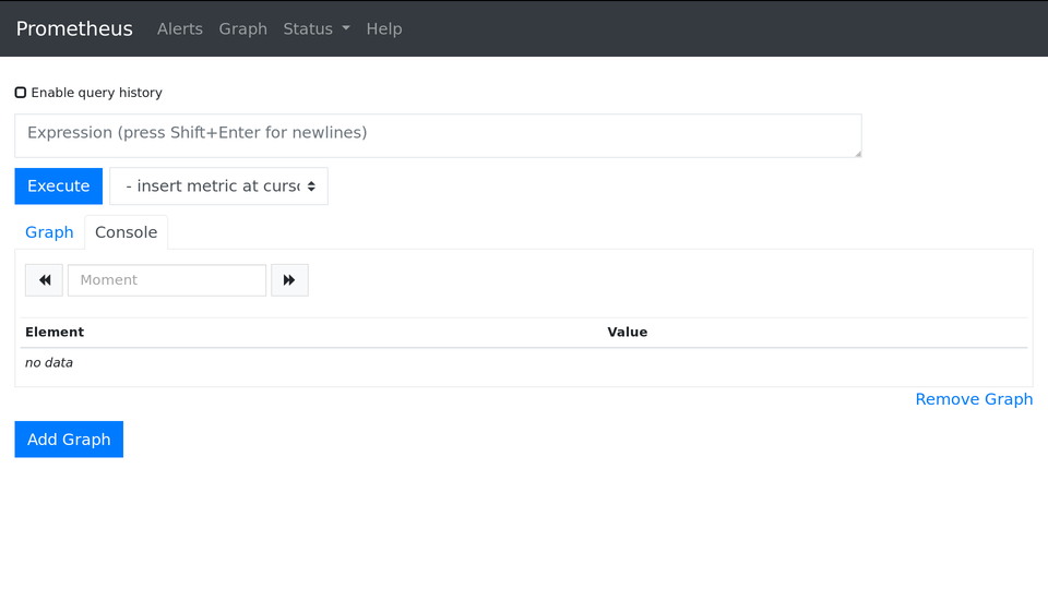 Prometheus server хранит все данные в виде временных последовательностей (time series). Каждая временная последовательность определяется именем метрики и набором меток (labels) типа ключ-значение (key-value). Давайте сразу посмотрим несколько примеров в Prometheus web UI. Напомню, он работает на localhost:9090. Чтобы не городить скриншотов, я буду показывать запросы в своём псевдо-терминале, а вы не ленитесь и пробуйте у себя.