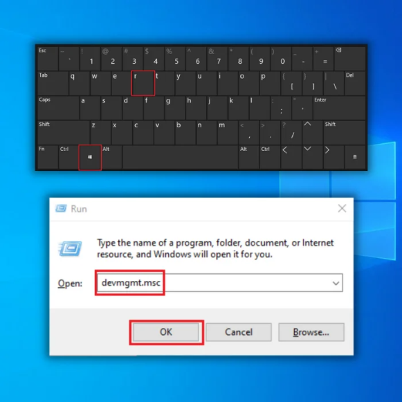 1. Нажмите Windows + R. Введите devmgmt. msc и нажмите Enter, чтобы открыть диспетчер устройств.
