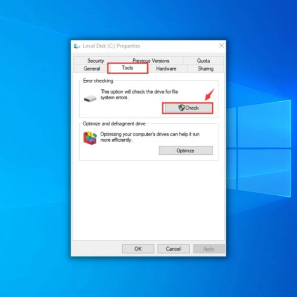4. В окне «Свойства» перейдите на вкладку «Инструменты» и нажмите «Проверить» в разделе «Проверка ошибок».