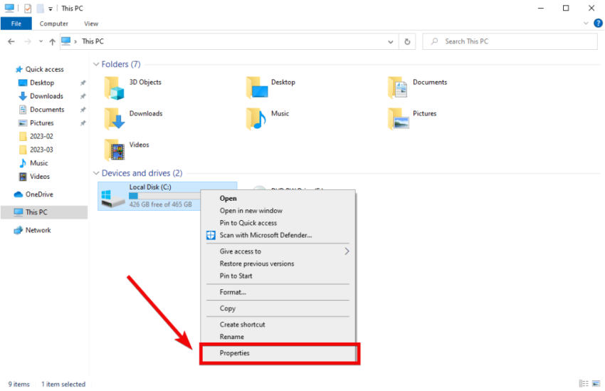 3. Щелкните правой кнопкой мыши диск и выберите «Свойства».