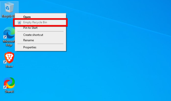 6. Когда все будет готово, перейдите на рабочий стол. Щелкните правой кнопкой мыши по корзине и выберите «Очистить корзину».