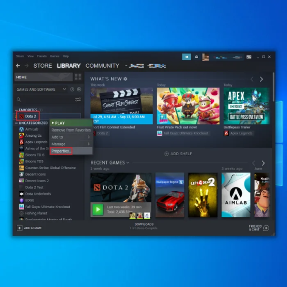 3. Щелкните правой кнопкой мыши название игры, файлы которой вы хотите проверить, и выберите «Свойства» в раскрывающемся меню.