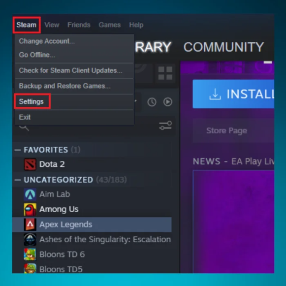 1. Откройте клиент Steam и перейдите в «Настройки».