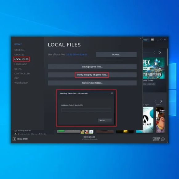 Если предыдущие методы устранения неполадок не помогли решить проблему, возможно, проблема связана с повреждением файлов игры, особенно тех, которые связаны с отслеживанием прогресса игры. Чтобы определить, так ли это, вам следует использовать встроенную функцию Steam для проверки целостности файлов игры. Выполните следующие действия, чтобы запустить проверку: