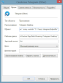 2. Прописываем в ярлык для запуска Telegram в поле «Объект»:
