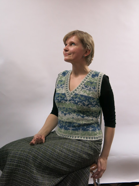 И совсем недавно завершился проект по тестированию описания к модели Лены Родиной «Виккель», мы вязали эту модель вшестером, каждый свою версию, отчет можно посмотреть здесь и я тоже принимала участие и связала свой вариант этого жакета. Вот такой он получился: