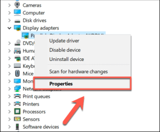 - Чтобы откатить драйвер, щелкните правой кнопкой мыши любое из перечисленных устройств и нажмите «Свойства».