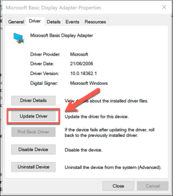 - Если вы хотите вернуться к более новому драйверу позднее, вернитесь в окно диспетчера устройств , щелкните правой кнопкой мыши драйвер и нажмите Свойства . На вкладке Драйвер окна Свойства нажмите кнопку Обновить драйвер .