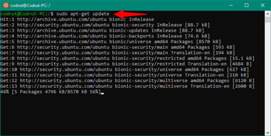 8. Как загрузить и установить приложения Linux в Windows 10, используя Bash в Ubuntu, с помощью команды SUDO APT-GET INSTALL