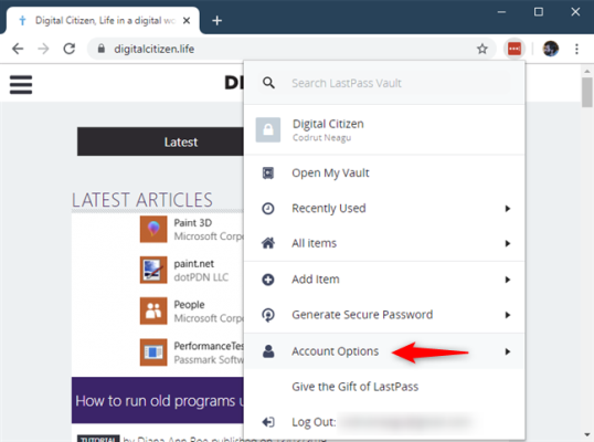 В меню LastPass перейдите в раздел «Параметры учетной записи».